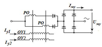 Магнитные усилители с внутренней обратной связью часто применяются в системах возбуждения и управления. Один из вариантов схемы простейшего однофазного магнитного усилителя (МУ) показан на рисунке 5.6.