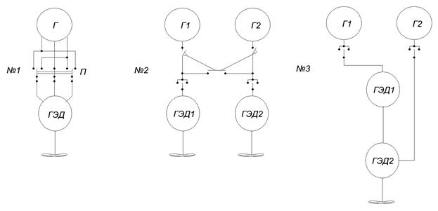 Схемы цепи главного тока различаются числом генераторов и ГЭД и способом их включения. Их много, но рассматриваем 3 из них (см. рис. 6.1):