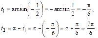 Арксинусом числа а называется такое число х из интервала