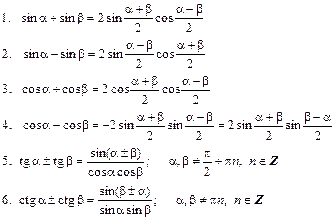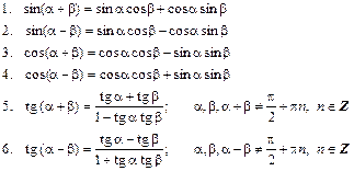 II. Формулы (теоремы) сложения аргументов: