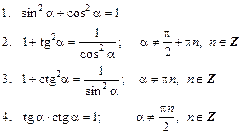 I. Основное тригонометрическое тождество и следствия из него: