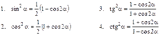 V. Формулы понижения степени: