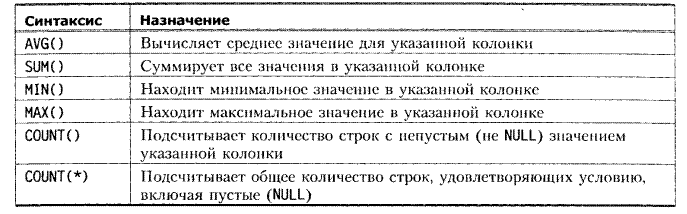 ALL. Если в запросе было определено условие, сужающее диапазон группировки выбираемых строк, то при указании в разделе GROUP BY ключевого слова ALL сервер будет выводить список всех групп, но не будет выполнять для них функции агрегирования.