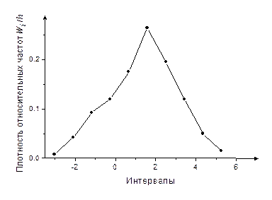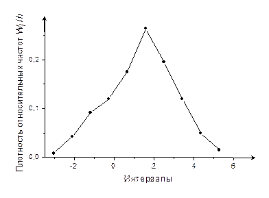 Сравнивая полигон относительных частот (рис. 4) с видом графиков плотности распределения f (x) для основных непрерывных распределений (рис. 1-3), выдвигаем гипотезу, что случайная величина имеет нормальное распределение с параметрами m (математическое ожидание) и σ (среднее квадратическое отклонение).