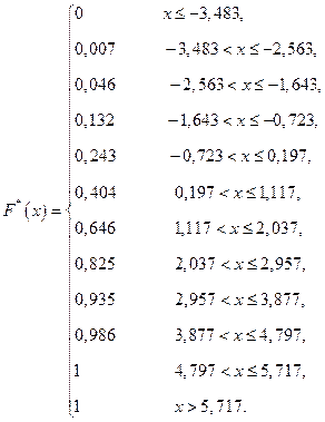 3. Запишем гипотетические функции плотности распределения f (x) и F (x), т. е. функции, соответствующие выдвинутой гипотезе о нормальном распределении: