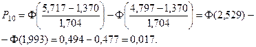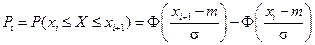 4. С помощью формул, соответствующих нормальному закону распределения, вычислим теоретические вероятности попадания случайного признака в каждый из 10 интервалов: