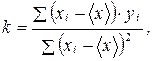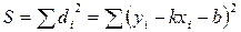 Наилучшие значения k и b выбираются таким образом, чтобы сумма квадратов этих отклонений по всем n измерениям