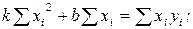 Искомые величины k и b получаются решением системы уравнений: