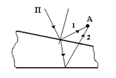 Когерентные волны 1 и 2 возникают из одного падающего луча П при отражении цугов от нижней и верхней поверхностей пленки