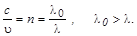 , где n – абсолютный показатель преломления среды (n > 1). При переходе световой волны из одной среды в другую изменяется длина волны. Действительно, так как частота световой волны не изменяется,
