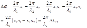 где индекс 21 означает, что из оптического пути волны 2 вычитается оптический путь волны 1. Оптическая разность хода – величина алгебраическая: она может быть положительной или отрицательной.