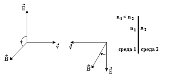 При отражении световой волны, падающей нормально на границу раздела двух сред, направление вектора скорости