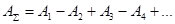 . Поэтому амплитуда результирующих колебаний, вызванных совместным действием двух соседних зон, будет равна разности амплитуд колебаний, возбужденных в точке наблюдения волнами, исходящими от каждой зоны в отдельности. Амплитуду результирующих колебаний, возбужденных волнами, исходящими от всего фронта волны, можно представить в виде знакопеременного ряда: