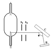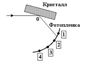 20.24. На рисунке изображена установка для наблюдения дифракции рентгеновского излучения. При вращении кристалла С только тот луч будет отражаться на фотографическую пластинку В, длина волны которого удовлетворяет уравнению Вульфа–Брэггов. При каком наименьшем угле скольжения q между плоскостью кристалла и пучком рентгеновских лучей были отражены рентгеновские лучи с длиной волны