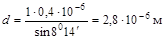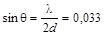 ; d sinj = K l, 4l×sinj = 1l, sinj = 0,25, j» 14030¢, 2j = 290.
