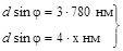 2. Запишем условия для дифракционных максимумов, формула (5):