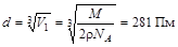 М = 0,058 кг/моль каменной соли и ее плотность r = 2,2×103 кг/м3. Кристаллы каменной соли обладают простой кубической структурой.