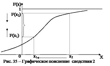 Действительно (рис.35), если приближать значение х2 к значению х1 (уменьшать размер интервала) пока они не сравняются (х1 = х2.),то интервал превратится в точку (СВ примет конкретное значение) Тогда значения функции F(х). также будут сближаться, пока не сравняются и разность между ними станет нулевой.