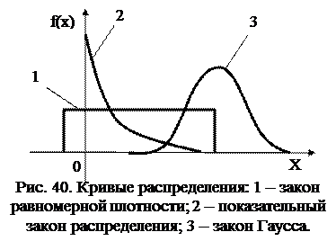 Свойство 4. График дифференциальной функции распределения называется кривой распределения (рис. 40) и весьма нагляден (кривые для разных законов легко отличить друг от друга).