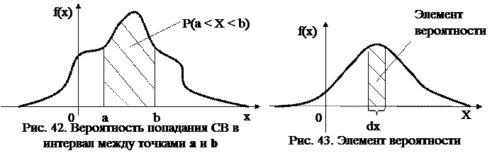Геометрически (рис. 42) вероятность попадания СВ в интервал между точками а и b – это площадь под кривой распределения, лежащая между точками а и b.