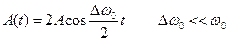 - уравнение биений. Первый множитель медленно меняется, второй – быстро. Уравнение можно представить в виде