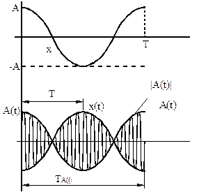 Поэтому биения – приблизительно гармонические колебания с медленно меняющейся амплитудой,