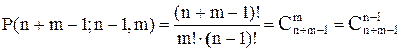 Всего в схеме (n -1)+m объектов, (n -1) – черточек и m – нулей. Число схем равно числу различных перестановок из (n + m – 1) – элементов, среди которых (n – 1) – одинаковых “|” и m – одинаковых “0”.