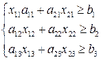 что бы выполнялись все заданные выше ограничения и при этом целевая функция обращалась в минимум. Основными особенностями ограничительных условий записанных в задаче является то, что в первуй задаче ограничения имели вид линейных неравенств, во второй – линейных неравенств и равенств, а в третей – только равенств.
