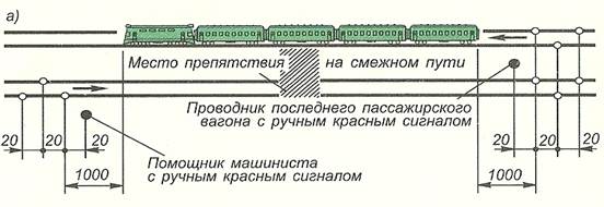 20 м и показывать ручной красный сигнал в сторону перегона.