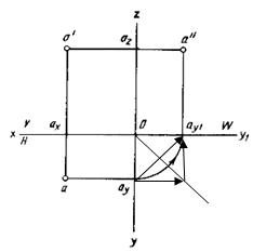 профильная проекция (на плоскость W) строится по координатам YА и ZА;