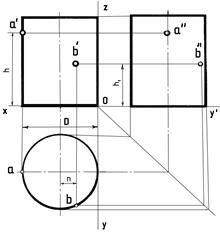 Построение фронтальной проекции цилиндра: