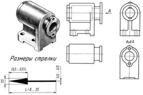 Все виды на чертеже должны по возможности располагаться в проекционной связи, но в целях более рационального использования поля чертежа ГОСТ 2.305—68 допускает располагать виды вне проекционной связи, на любом месте чертежа. В таких случаях наносится стрелка, указывающая направление взгляда на предмет. Вид должен быть отмечен надписью «Вид А» (рис. 5.2). Размер шрифта буквенных обозначений должен быть больше размера цифр размерных чисел в два раза.