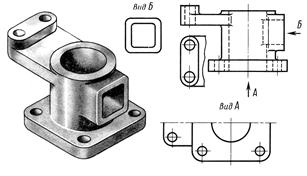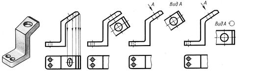 Дополнительный вид – это вид, который получается проецированием предмета на наклонную плоскость, которые невозможно показать на основных видах без искажения формы и размеров (рис. 6.4).