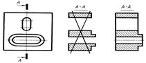 4) Если сечение получается состоящим из отдельных частей, то сечение должно быть заменено разрезом (рис. 5.17).