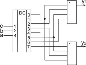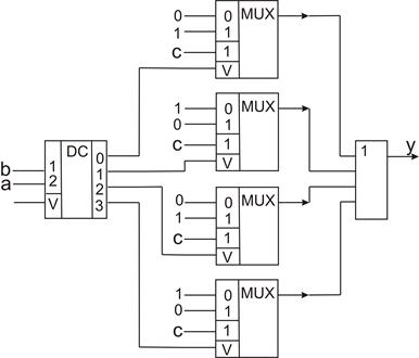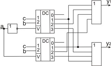 Пример 2 – Реализовать на DC 2à4 функцию от 3х переменных y=f (a,b,c),