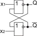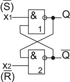 Активность входа x2 приводит к комбинации Set, поэтому x2 называют S, по аналогичной причине вход x1 называют R.