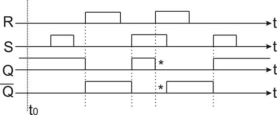 Чтобы заполнить временную диаграмму необходимо задать импульсы на входы сигналов R и S, выбрать момент начала отсчета t0, задать состояние входа Q до начала отсчета.