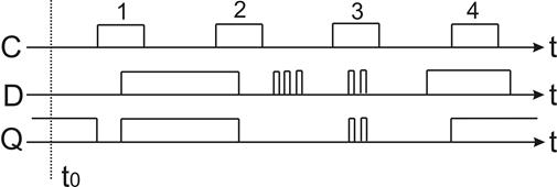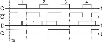 Таким образом, все устройство в целом срабатывает при переключении «С» из 1 в 0, то есть по заднему фронту (срезу) синхроимпульсов.