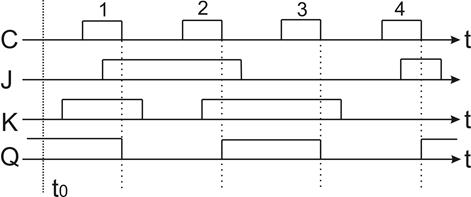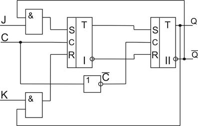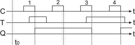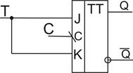 Если на оба входа JK-триггера подавать одну и ту же информацию, то получится триггер с одним управляющим входом, называемым Т.