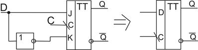 2) D – триггер на базе JK – триггера.