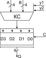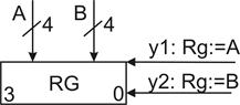 В составе регистра, кроме триггера, будет комбинационная схема, для обеспечения выбора числа А или числа В.