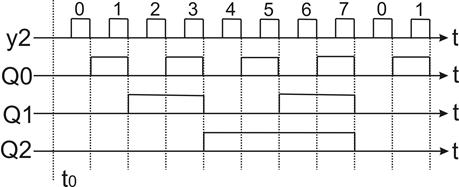 Выберем М=8=23. Показатель степени двойки указывает на требуемое число триггеров в схеме.