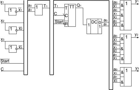 R = ]log22[ = 1 à {Q1}, то есть требуется один триггер памяти.
