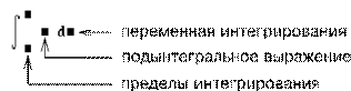 2) Заполните указанные "знакоместа": пределы интегрирования, подынтегральное выражение и переменную интегрирования.