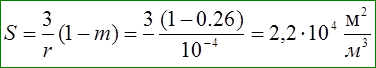 где S — удельная поверхность в м2/м3;