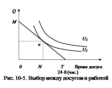 Выбор работником соотношения времени работы и времени досуга покажем с использованием рис. 10-5.