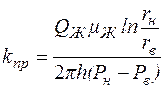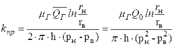 Фильтрация жидкости или газа в нем происходит в радиальном направлении от наружной поверхности к внутренней. Тогда проницаемость пород по данным опыта определяют по следующим формулам.