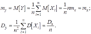 . Требуется найти числовые характеристики этого среднего арифметического - математическое ожидание и дисперсию- и выяснить, как они изменяются с увеличением