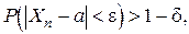 Запишем теорему Чебышева в виде формулы. Для этого разъясним смысл термина «сходится по вероятности». Говорят, что случайная величина