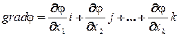 - частная производная функции по i -фактору; i, j, … k - единичные векторы в направлении осей факторного пространства.
